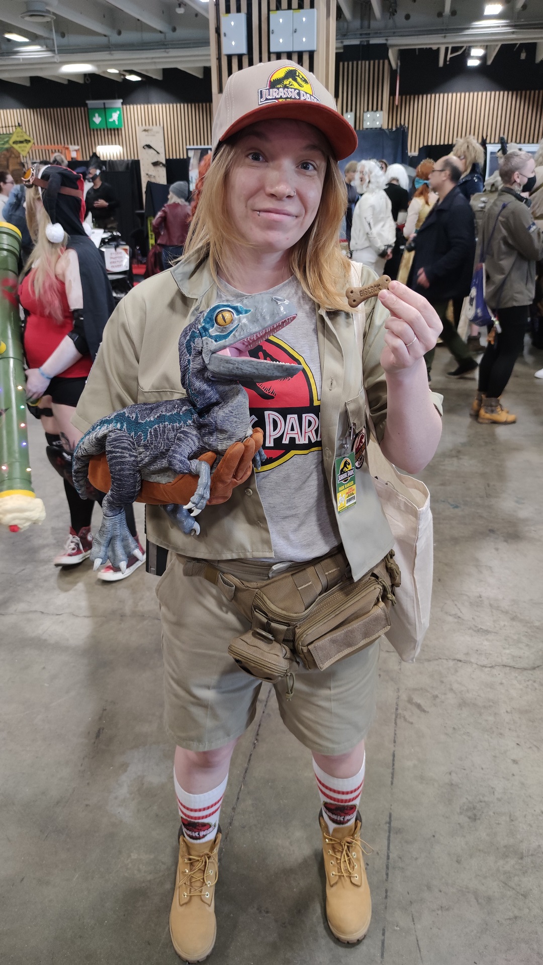 @lauriesegalen une dresseuse d’un bébé raptor assortie jusqu’aux chaussettes.