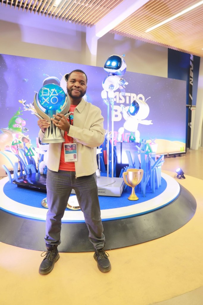 Et la pièce maîtresse de l’exposition, un diorama d’où s’élèvent une multitude d’Astro. Avec à leurs pieds toutes les consoles de salon de la firme. Et même les trophées des succès PlayStation. Dont le platine que je brandis et plus lourd qu’il ne le laisse paraître.