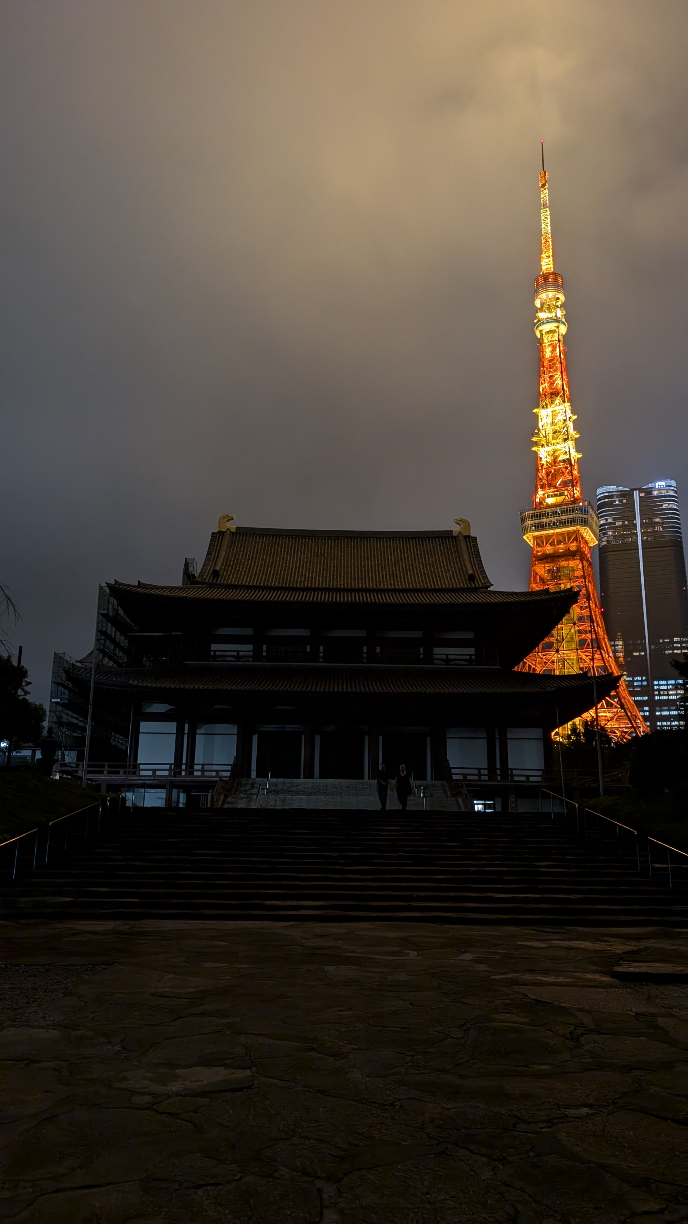 À deux pas, je suis passé devant mon ultime temple du séjour. Le Zojo-ji, avec l’étincelante tour en arrière-plan. Et c’est sur cette belle photo que se termine ma dernière nuit à Tokyo.