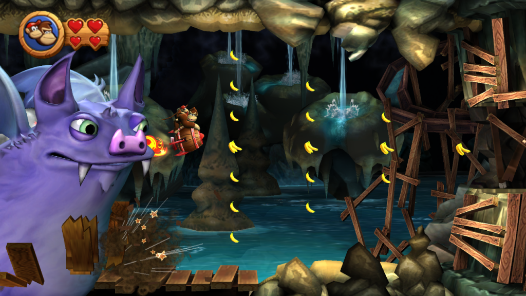 Bien qu’il s’appelle Donkey Kong Country, ce Returns avait laissé de côté les ennemis emblématiques des opus SNES qu’étaient les Kremlings. Au profit des Tikis qui étaient à des années lumières derrière eux en termes de design et d’intérêt. Ce sont littéralement des tonneaux ambulants que l’on pouvait éliminer par un saut ou une roulade.