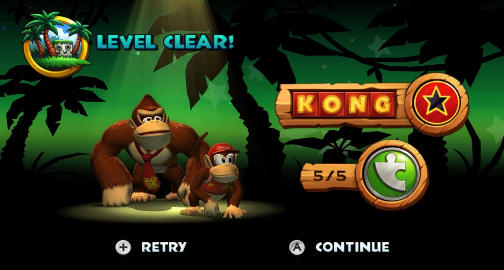 Cette difficulté ne prenait pas seulement en compte les phases de plateformes. Mais également la quantité folle d’objets à récupérer. De défis à réaliser tels que le contre la montre, et le mode miroir qui ne nous laisse qu’une seule vie et nous prive de Diddy. Tout ça pour pouvoir compléter le jeu non pas à 100%, mais à 200% (c’est le jeu lui-même qui l’indique).