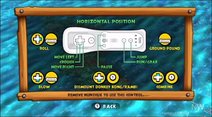 En revanche, la jouabilité n’était clairement pas des plus adaptées sur Wii pour un jeu de ce genre. Et c’est le plus principal défaut de ce DKCR. Puisqu’on n’avait le droit qu’à deux configurations. Une avec la Wiimote seule à l’horizontale, l’autre intégrant le Nunchuk. Et le Pad Classique dans tout ça ? Ça aurait été bien de l’inclure aussi histoire d’avoir une expérience de jeu bien plus proche d’antan. Plutôt qu’une pauvre Wiimote qui manquait cruellement d’ergonomie.