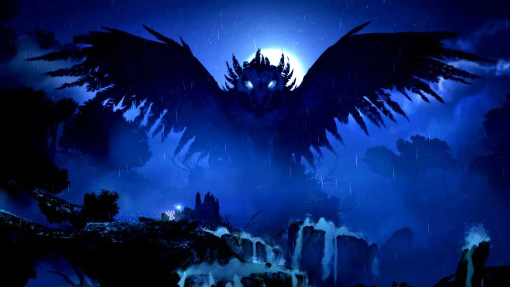 Car la seconde moitié prend une tournure d’abord plus menaçante avec le premier face à face entre Ori et Kuro (d’où le « facing the dark« ). Le principal antagoniste représenté par une chouette gigantesque, terrifiante, et nourrie par une haine incommensurable envers Ori. Et qui, d’un battement d’ailes, le précipitera dans le précipice. La cinématique se terminant par Kuro se rapprochant dangereusement d’un Ori en pleine chute libre, suivi d’un fondu au noir laissant planer le doute sur son sort.