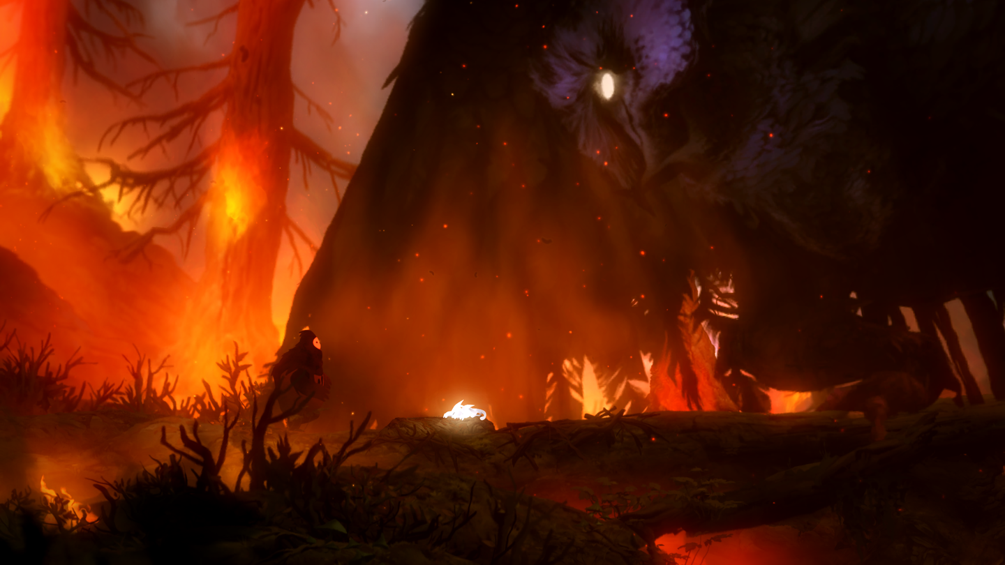 Après cette séquence haletante, Ori commença à planer en direction de l’arbre aux esprits pour parachever sa quête. Mais c’était sans compter la réapparition soudaine de Kuro qu’Ori croyait pourtant avoir semé. Bien décidé à l’empêcher d’aller plus loin en le faisant tomber violemment au sol. Une chute dont Ori ne semble pas pouvoir se relever. Le laissant à la merci d’un Kuro s’apprêtant à lui porter le coup de grâce.