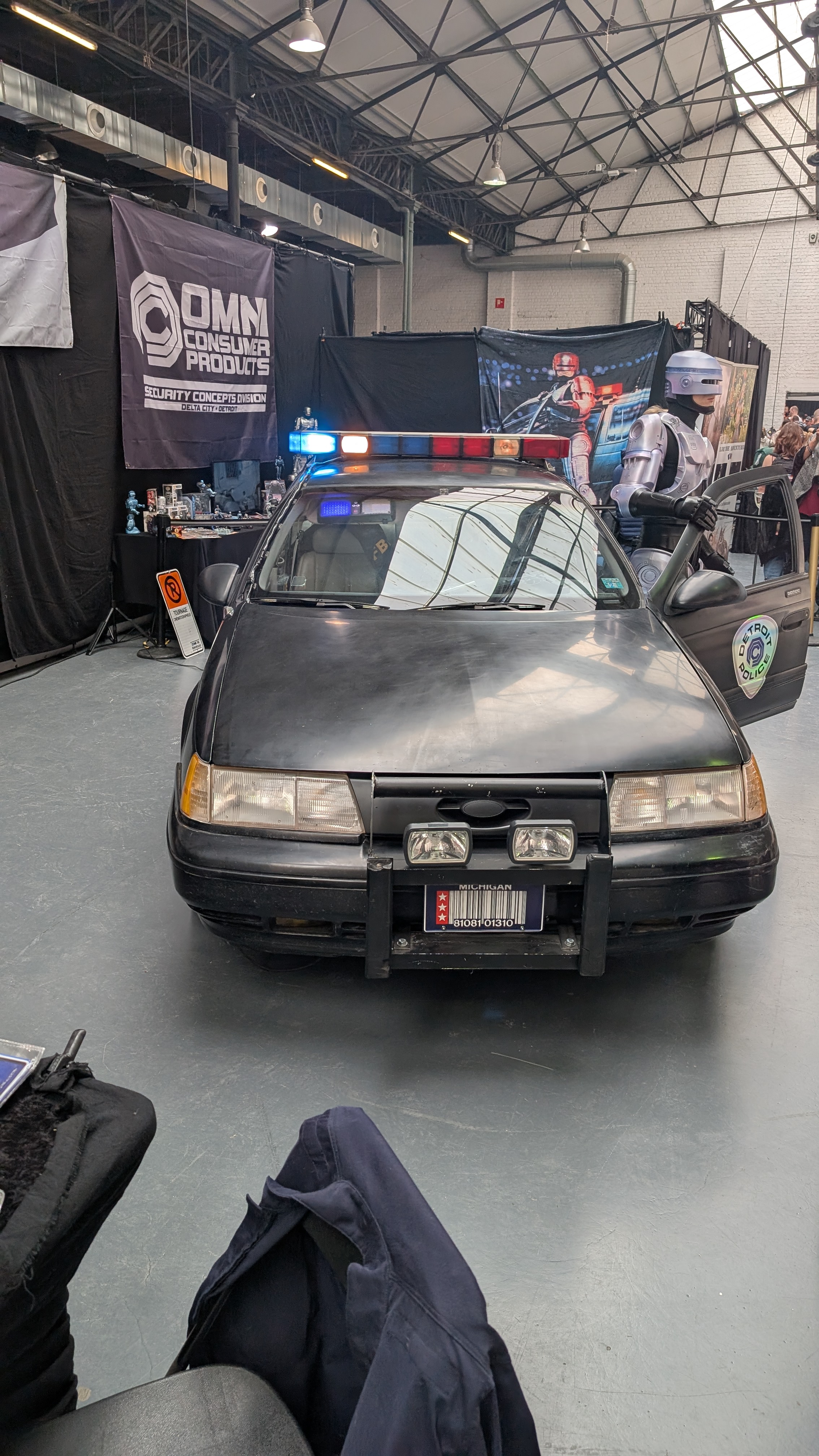 Comme ce décor dédié à RoboCop visible dès l’entrée. Où j’ai pu poser en Finn aux côtés de @johnnypen_cosplay dans le rôle du fameux robot flic avec sa voiture. Et @julie_the_adventurer en tant que son binôme Anne Lewis.