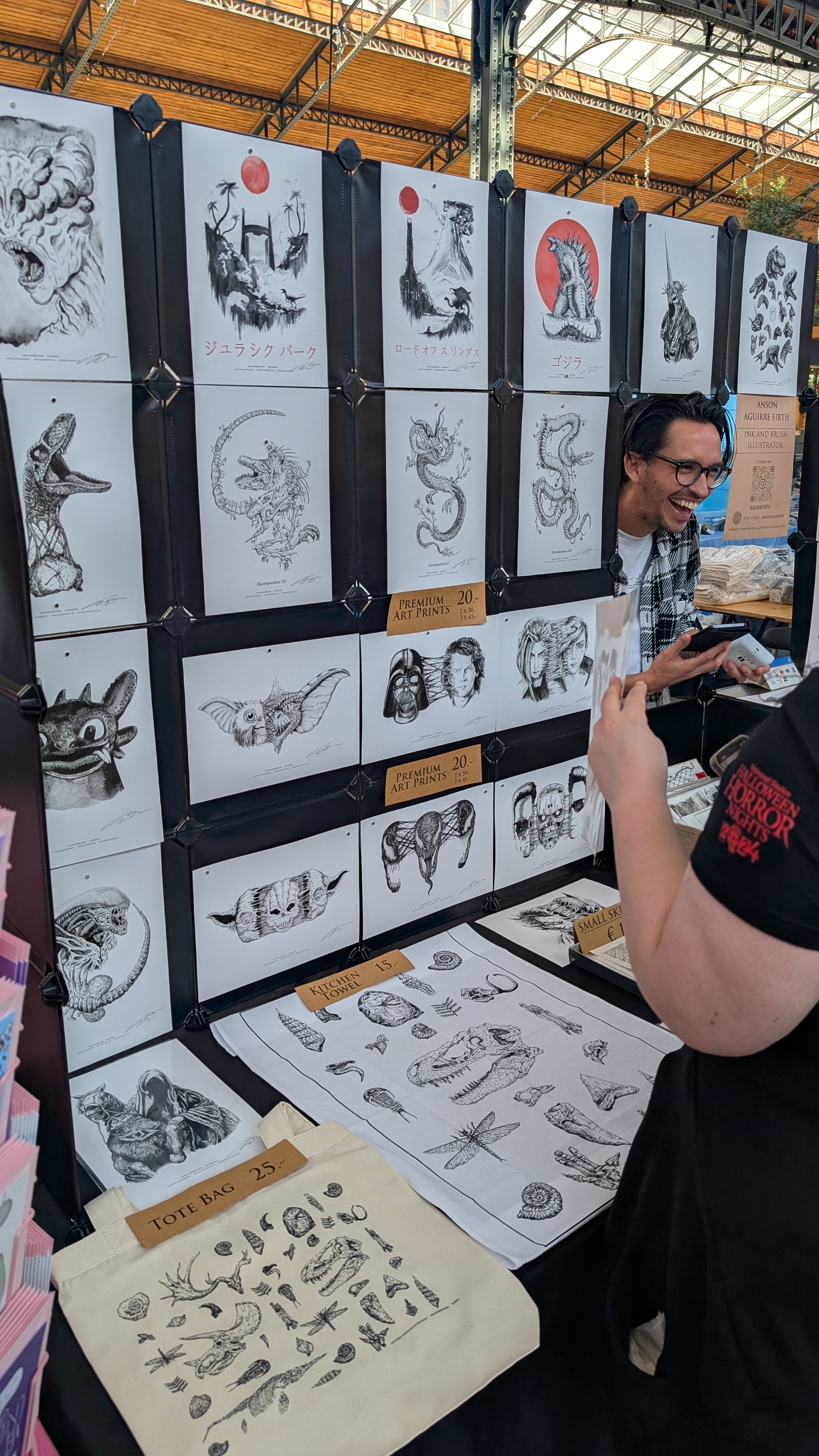 C’est dans ce hall que se situait (la petite) Artist Alley. Avec ici les illustrations de @aguirrefirth, et les customisations de @isolasospesa.