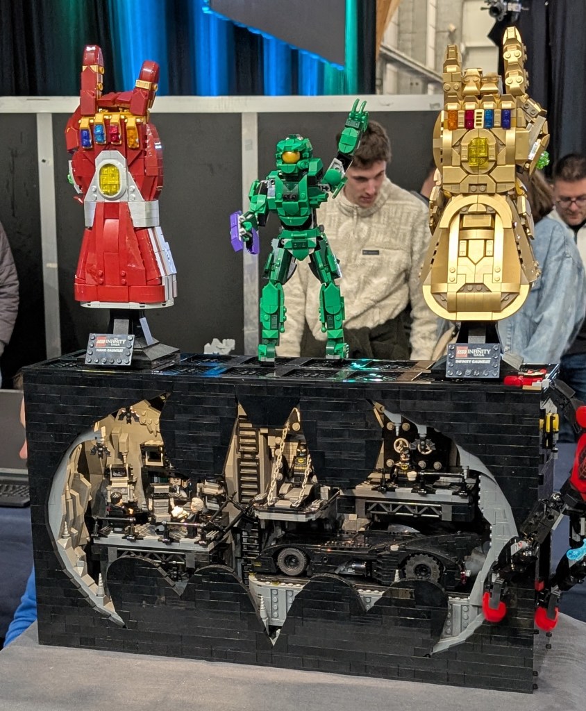 Le Gant de l’Infini de Thanos, de Tony Stark, le Masterchief de Halo, et une mini Batcave tous faits de LEGO par Brikol&Go.