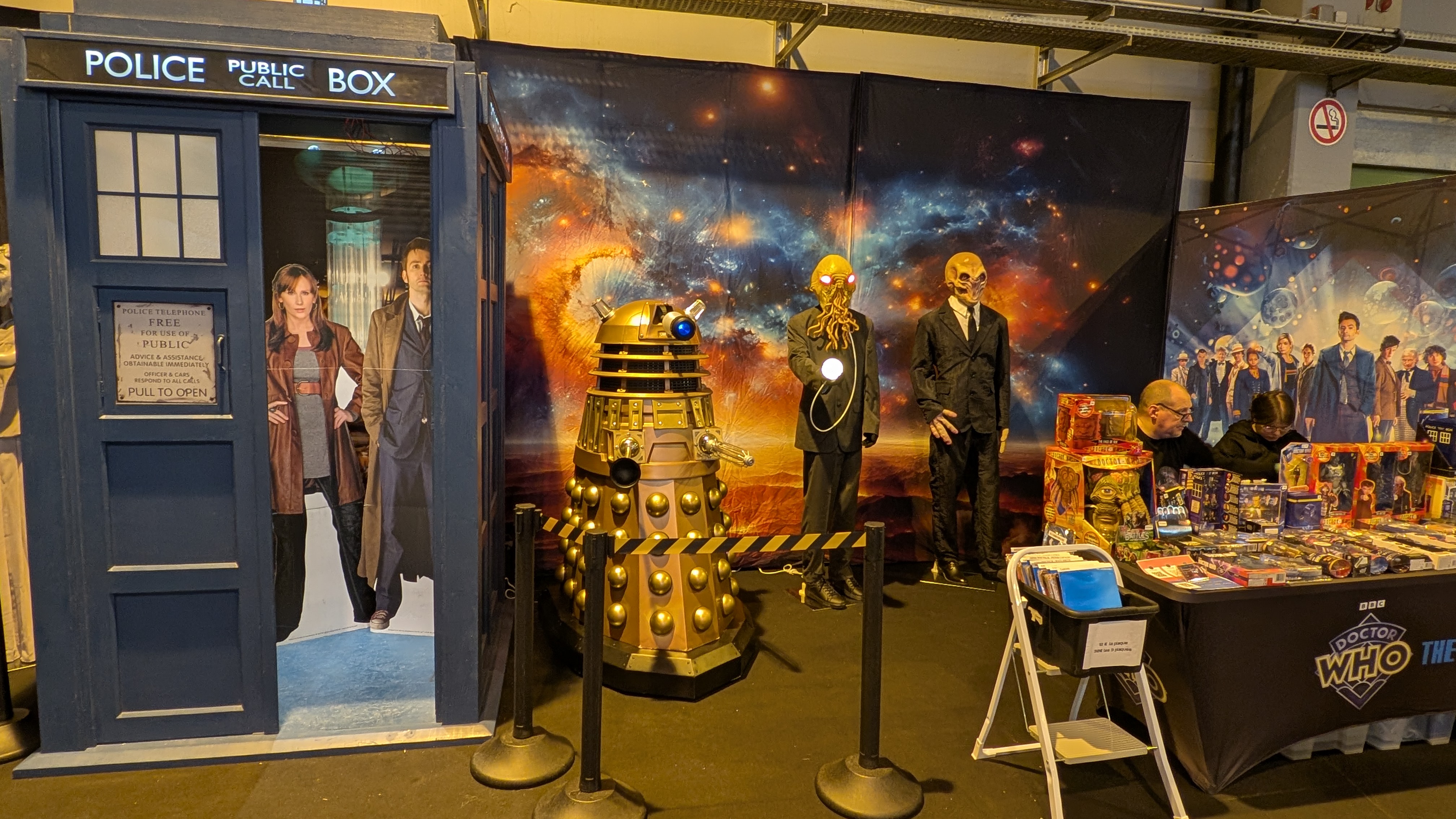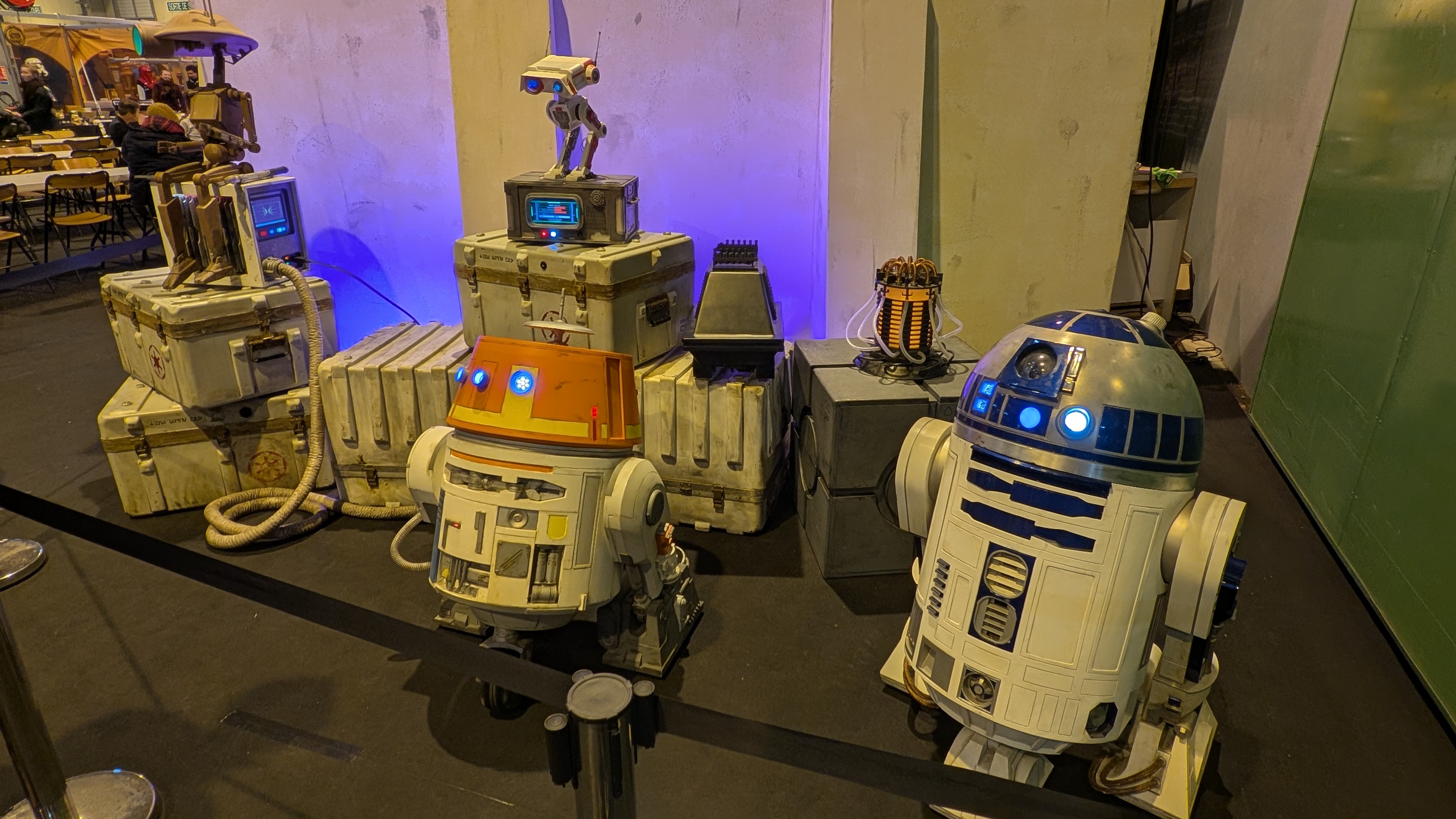 Quant au hall 4 qui hébergeait l’espace dédicaces & photoshoots, il était principalement thématisé sur la Science-Fiction (avec du Doctor Who notamment) et surtout Star Wars. Avec la présence d’assos en lien avec cette saga comme la @r2kt19 et leurs droïdes roses, le bar « La Cantina » , et beaucoup de chouettes expositions et décors dédiés.